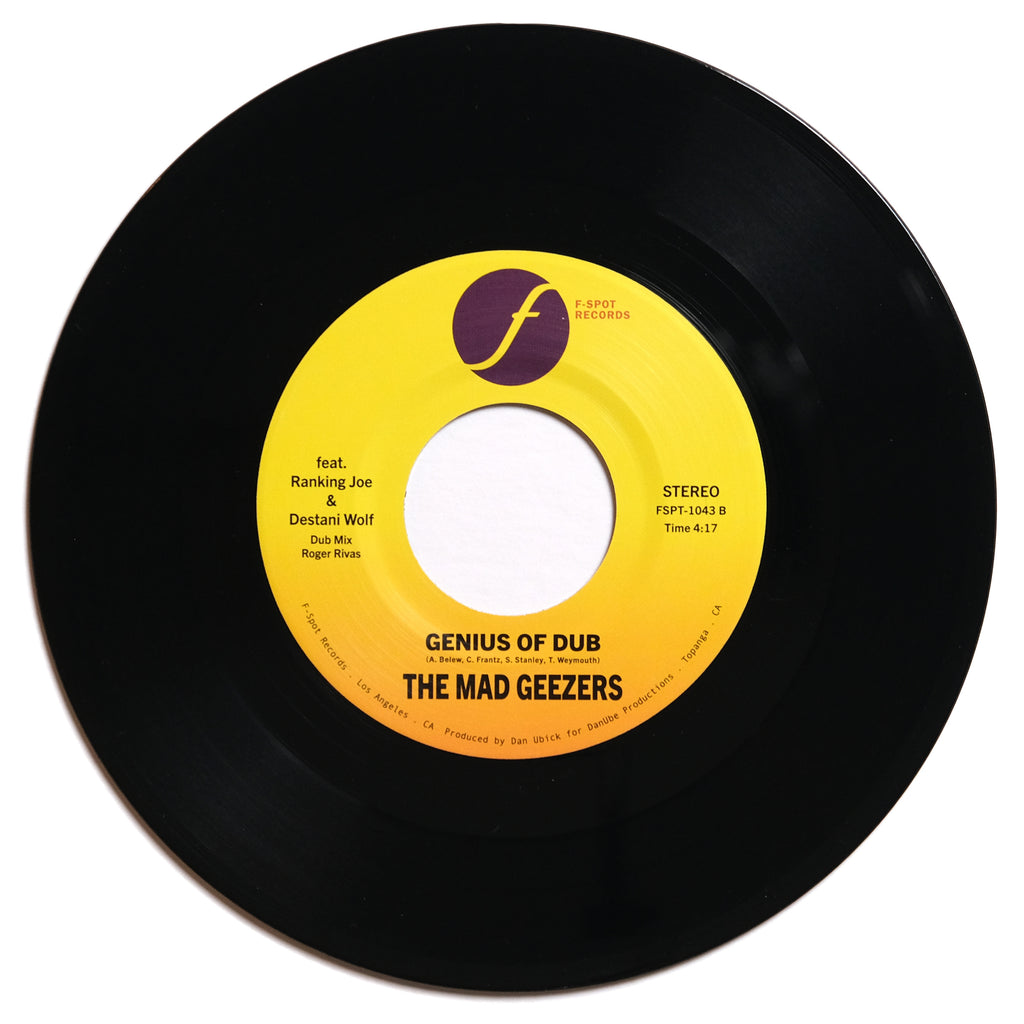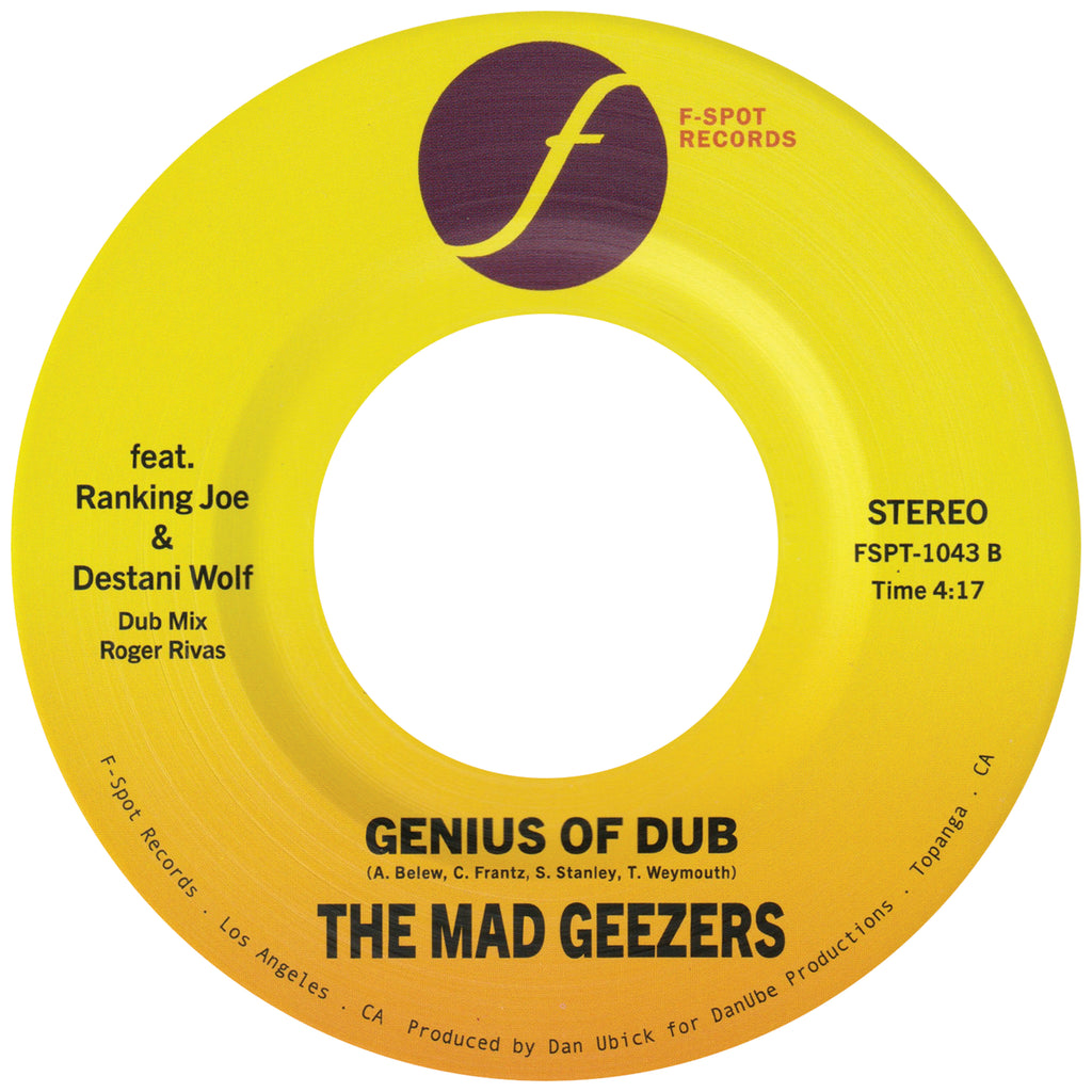 First on producer Dan Ubick’s To Do list was to channel the fun, attitude, and natural talent on records by Jamaican legends like Yellowman, U-Roy, Sister Nancy, Barrington Levy, Bunny Wailer, and Freddie McGregor. Secondly, find a song that no Jamaican artist has covered, but every DJ on the planet loves, and flip it into a Dancehall groove. Hmm… What about Tom Tom Club’s “Genius of Love”? Ooh! That’s it! So, The Mad Geezers broke out synths, Syn drums, and invited some friends to the party, stepping up to the plate with the brand-new F-Spot Records 45 “Genius Of Love” b/w “Genius Of Dub (Roger Rivas Dub Version). Featuring vocals by one of Jamaica’s shining jewels, Ranking Joe & Oakland’s chosen daughter, Destani Wolf (who many will recall from top-selling Night Owls singles such as “After Laughter” and “Let’s Stay Together,”) this 7” is a sure shot.